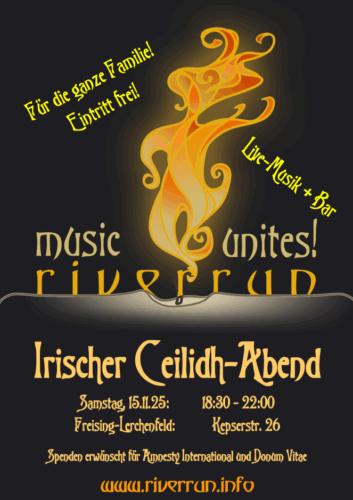 Riverrun spielt zum Tanz auf – der Eintritt ist frei. Jedoch werden Spenden erbeten – die unter anderem unserer Ortsgruppe Freising zufließen werden.